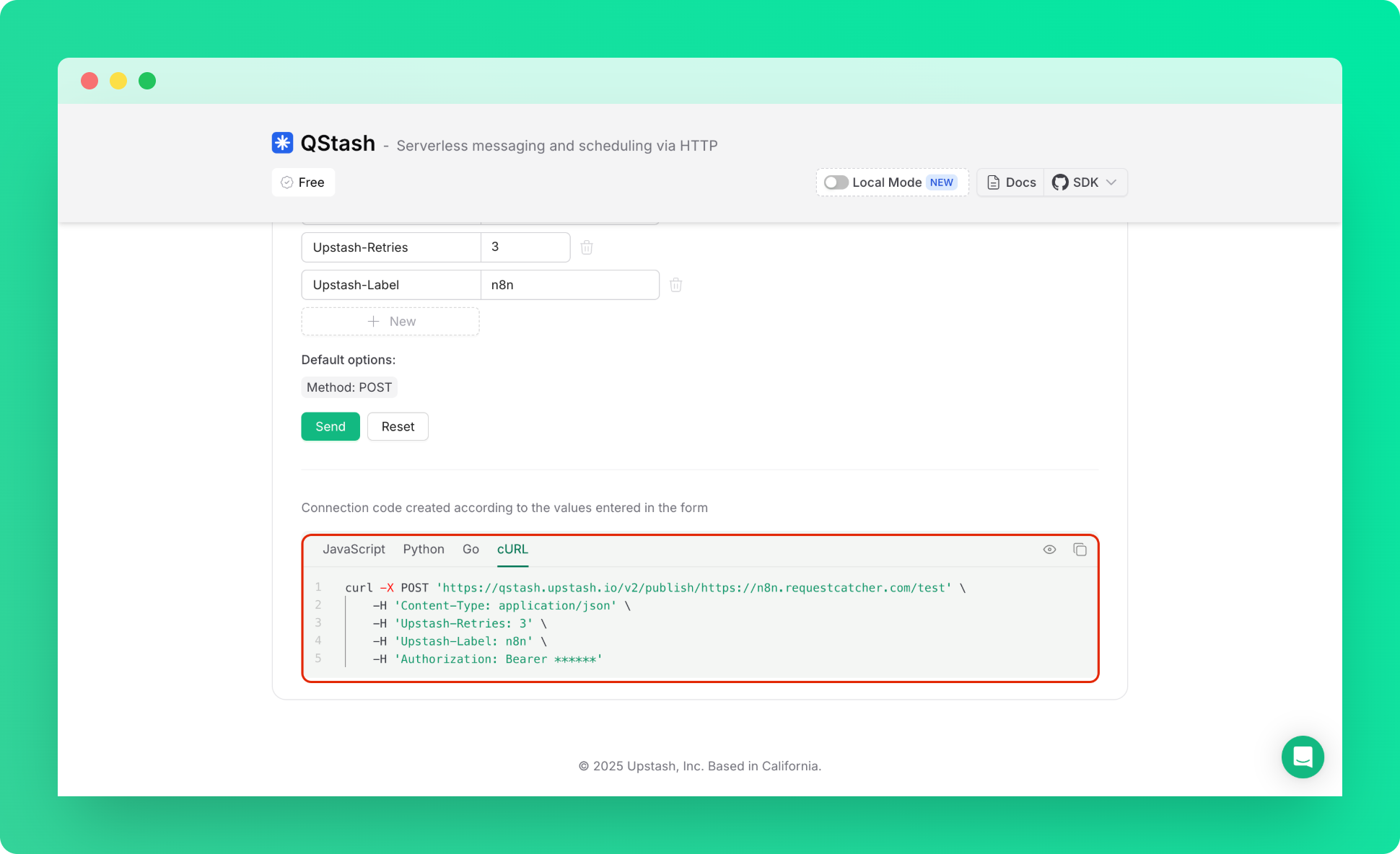 1. Go to Upstash Console and open QStash Request Builder Tab.