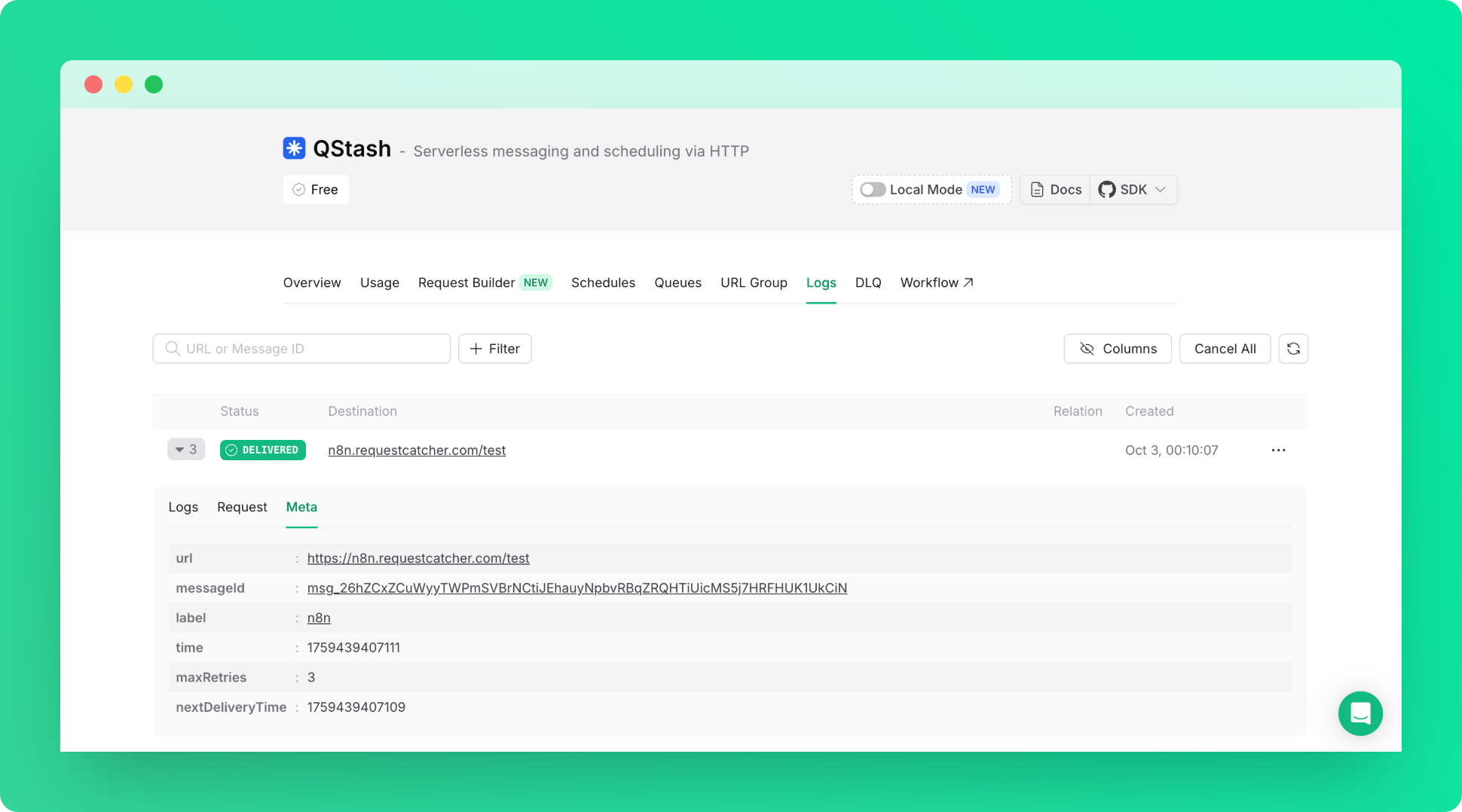3. That’s it! You can check the logs in the Qstash Console to confirm your QStash Request is working.