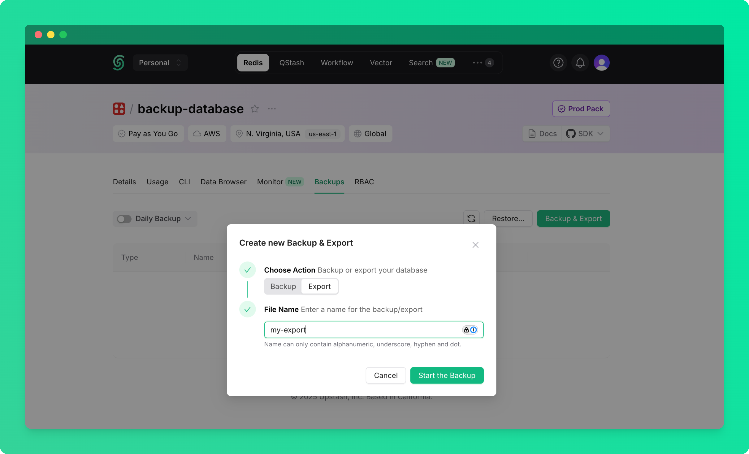 You’ll be able to export your Upstash Redis database as an RDB file for backup or migration purposes.
