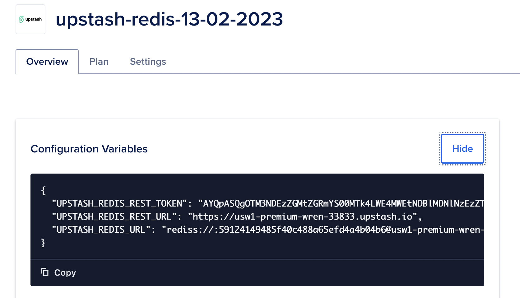 After selecting Name, Plan and Region, click Add Upstash Redis button.